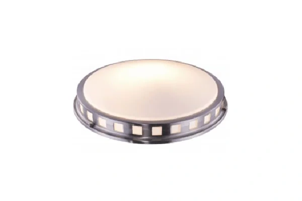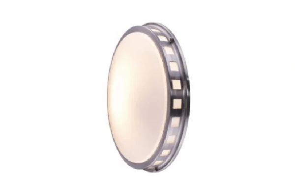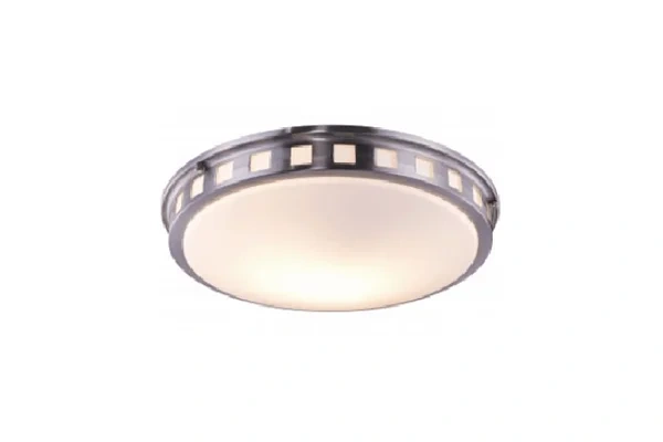 The ring detail at the perimeter of this flush mount is what separates it from a plain dome ceiling fixture - the circular ring sits around the frosted glass dome and adds a visible layer of structure to the fixture face that a smooth canopy-and-dome alternative does not carry, giving the ceiling light a finished, deliberate character that reads well in a hotel guestroom hallway or boutique corridor where guests see the ceiling fixtures at close range as they pass. The Ring Detail Flush Mount Light uses that ring detail on a flat brushed nickel canopy that sits against the ceiling without any gap or drop, keeping the fixture fully flush against the ceiling surface and the frosted dome diffusing the light output evenly downward and outward below. The 13-inch diameter gives the fixture enough scale to be a clear, present light source on the corridor or entrance ceiling without being oversized for a hallway position.
