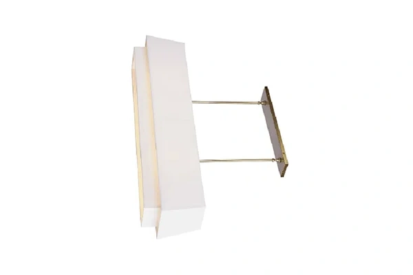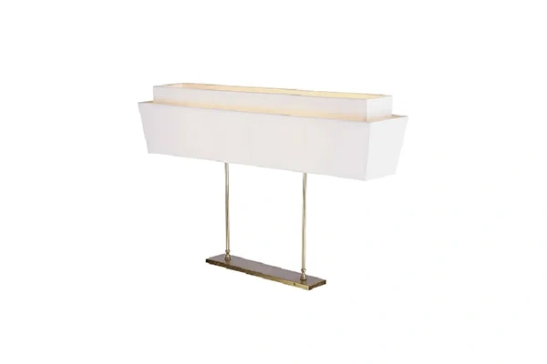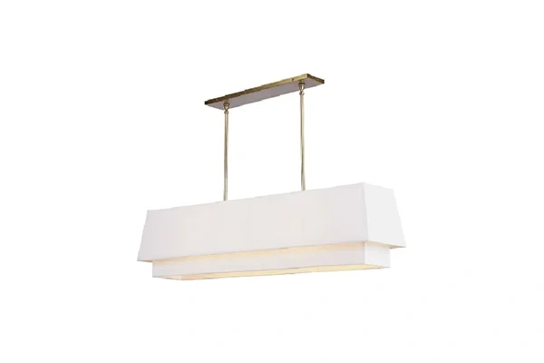A linear pendant suspended from two rod drop points rather than a single center rod produces a horizontal lighting presence overhead that a round drum or single-drop pendant cannot replicate above a long dining table or breakfast counter - the two rod suspension holds the rectangular shade level and stable across its full 40-inch length and the fabric shade emits light downward along that entire length, which gives a long table or bar counter below an even overhead light coverage from one end to the other without the uneven distribution that a center-hung round pendant produces at the same table position. The Linear Suspension Pendant Light uses that two-rod horizontal suspension format on a wide rectangular fabric shade where the brushed brass finish on both rod drops and the shade end caps carries a warm, consistent palette across the fixture from any angle in the dining or lounge area below. The 40-inch length is proportioned to suit a standard hotel dining table or breakfast bar counter without overhanging the table edges by an amount that would intrude on the seating positions alongside.