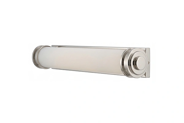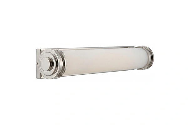 A single frosted glass tube running the full length of a vanity light bar produces a continuous, uninterrupted band of soft light above the mirror that a multi-shade bar with visible gaps between shade units does not replicate - the continuous tube emission covers the full mirror width without the light-and-dark rhythm of separate shades and the frosted glass surface diffuses the output evenly along the entire length so there are no brighter zones at the bulb positions and no dimmer zones between them. The Frosted Tube Bar Vanity Light uses that single-tube format on a slim wall mounting plate in brushed nickel that stays low-profile on the wall above the mirror and does not add visual weight between the tube element and the wall surface behind it. In a minimalist hotel bathroom or contemporary suite where a clean, uncluttered light bar above the mirror is the design standard, the single frosted tube is the right fixture format.