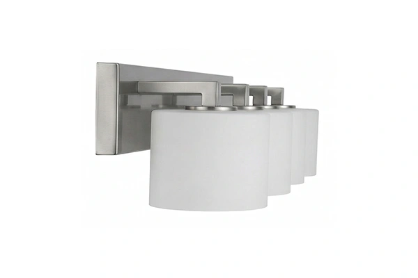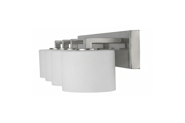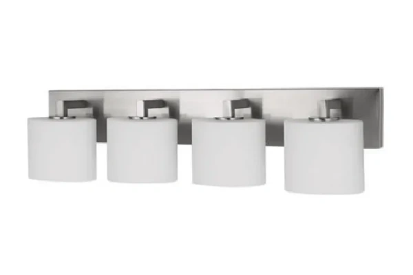 Working well in hotel guestroom bathroom vanity walls, boutique hospitality suite mirror positions, and upscale property bathroom lighting installations where even illumination across the full mirror width is the requirement, the Quad Drum Shade Vanity Light provides a bathroom vanity fixture that covers the full light range a hotel mirror position needs without concentrating the output in one area of the mirror surface. The brushed nickel bar and drum shades hold their quality through years of commercial hotel bathroom use and the four-shade distribution gives the vanity mirror the balanced, even face light that a guest using the bathroom for grooming and task functions expects. For hotel properties that want their bathroom vanity light to deliver consistent, even illumination across the full width of the mirror surface, this fixture is built for that.